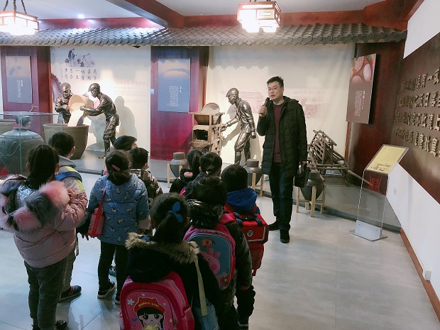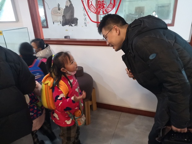 终于盼来了去酒厂的日子!2021年1月6日上午,大四班幼儿来到了酒厂,讲解员热情地接待了我们。一走进酒厂,孩子们被展厅里各种包装的酒吸引了:有袋装的、陶瓷的、玻璃的、还有大酒缸……在讲解员叔叔的带领下,孩子们了解了老字号“好咾黄酒”的文化渊源,结合一座座逼真的雕像,孩子们从中了解到了酿酒的过程、方法、喝酒的用具、装酒的器具等,对于这一发现,大家兴奋不已。孩子们来到酿酒车间,有两位工人爷爷为大家现场展示了手工制作米酒,结合讲解员叔叔的讲解,孩子们充分了解了米酒的制作流程,大家在参观过程中都找到了自己想要的答案。