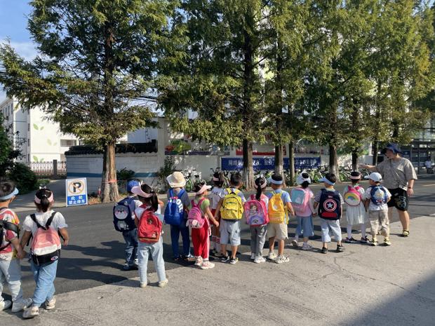 出发啦,我们走出幼儿园,在路上看到第一个交通标志:慢,提醒我们附近有学校,车辆应该要慢行。继续前行,直到第一个十字路口,大家一起等待绿灯亮起,在老师的带领下孩子们在斑马线上快速过马路。小朋友们还认识了限行标识、禁止停车标识、机动车行驶和非机动车行驶。