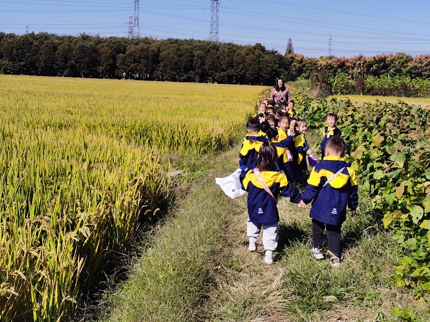 萌娃们手牵手,走在乡间的小路上,一同寻找属于秋天的快乐。一路上乡野之间的秋之美色尽收眼帘,孩子们像一只只小鸟,叽叽喳喳说个不停,他们又像是一匹匹自由驰骋的小马,开心地跑呀跳呀,欢乐的笑声在空中久久萦绕。在老师的带领下孩子们欣赏着秋天的美景,在观察中寻觅着有关于秋天的踪迹。