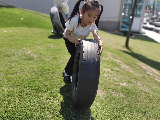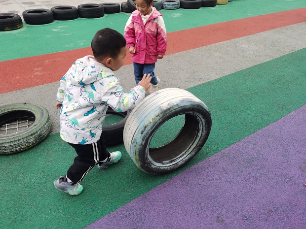 幼儿园的轮胎有它独特的魅力,小朋友们摸一摸,滚一滚,跳一跳,踩一踩,这些反复的动作都让小朋友们玩的不亦乐乎,带来无穷乐趣,也赋予了孩子们学习探索的能力。