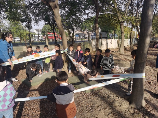 在活动开展前,老师们组织孩子进行了多次讨论,对于需要用到的材料、场地的布置、可以进行的游戏等进行了探讨,孩子们你一言我一语地积极表达自己的想法。“我们可以去爬树,那儿的树一定很高。”“在树林里玩捉迷藏的游戏一定很有趣。”还有的小朋友想在树上玩荡秋千游戏,无数个奇思妙想充斥着每个孩子的“小脑袋”。结合孩子们的想法,安幼中班组的老师们来到树林进行了现场审议,有哪些资源,有多少路线,每片树林适合做什么游戏。我们带着审议后的思考,召集了行政领导和其他级组老师进行方案审议,大家出谋划策、群策群力。